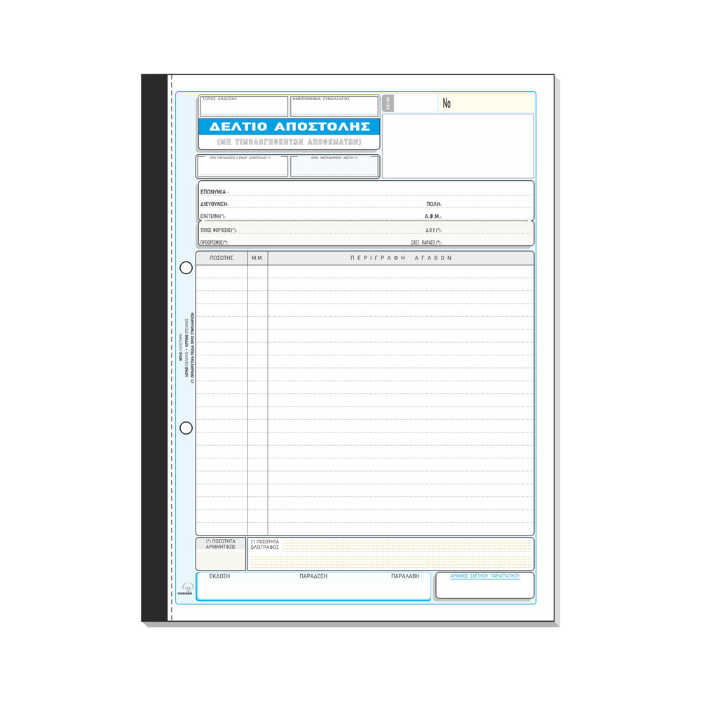 Τύπος Εντύπου: Δελτίο Αποστολής