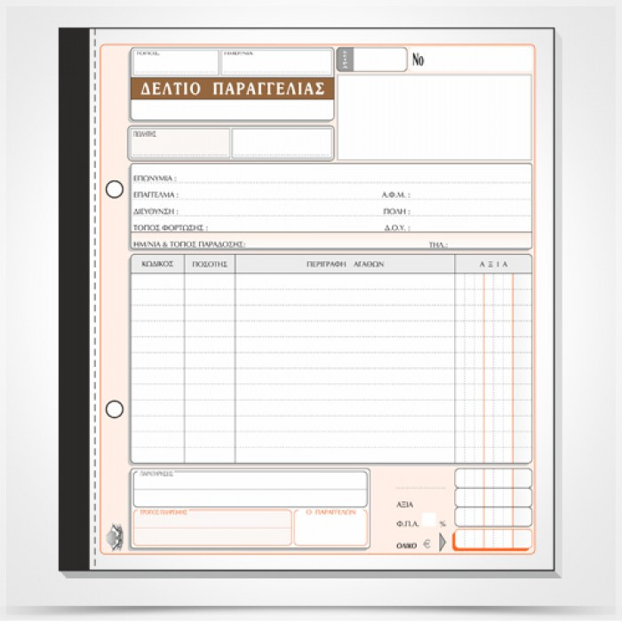 Έντυπο λήψης παραγγελιών με αντίγραφο για το παραγγέλοντα