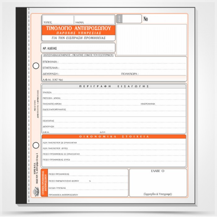 Τιμολόγιο παροχής υπηρεσιών για έκδοση από εμπορικό αντιπρόσωπο αγαθών