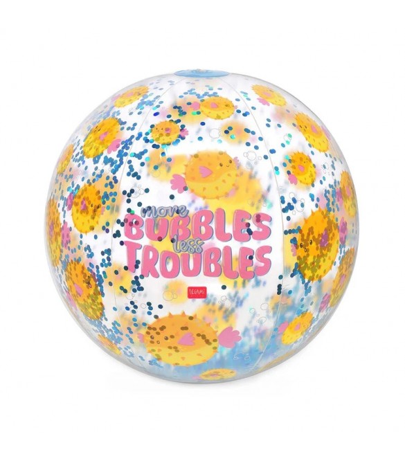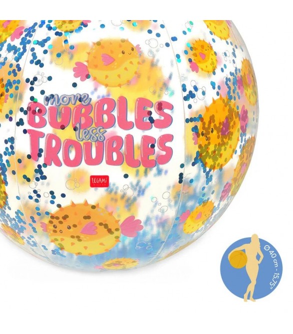 Legami φουσκωτή μπάλα θαλάσσης με γκλίτερ, θέμα Pufferfish και γραμμένο μήνυμα... "More Bubbles Less Troubles". Διάμετρος 40cm.