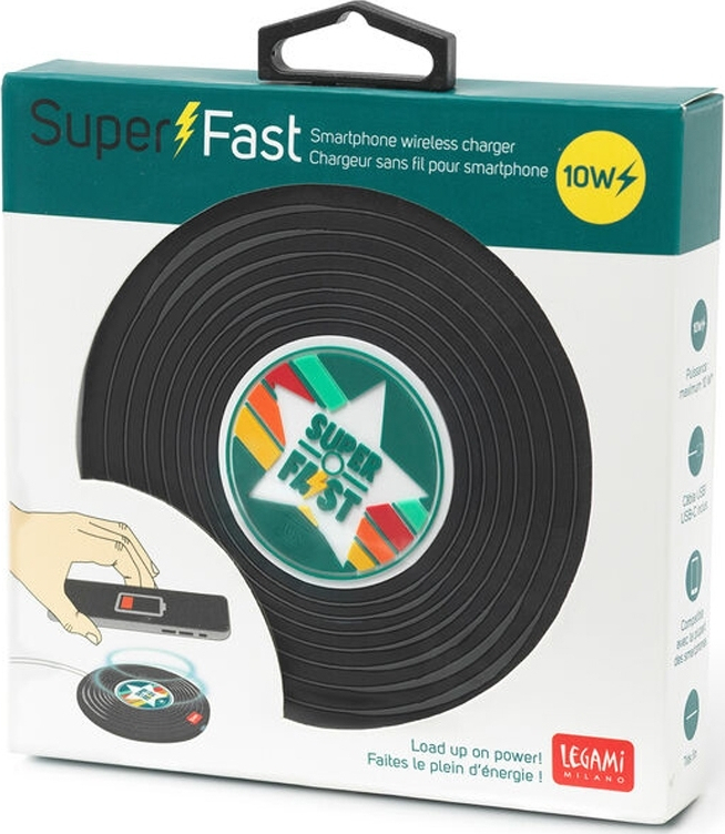 Μην αφήσετε την μπαταρία του smartphone σας να σας εκβιάσει 1%! Συμπληρώστε τη δύναμή σας με το Super Fast, τον ασύρματο φορτιστή μπαταρίας Smartphone από τη Legami. Θα φέρει ένα χαμόγελο στο πρόσωπό σας κάθε φορά που το χρησιμοποιείτε, με το αρχικό του σχήμα βινυλίου! Τοποθετήστε το smartphone σας σε αυτό και εκεί το έχετε, χωρίς καλώδια!